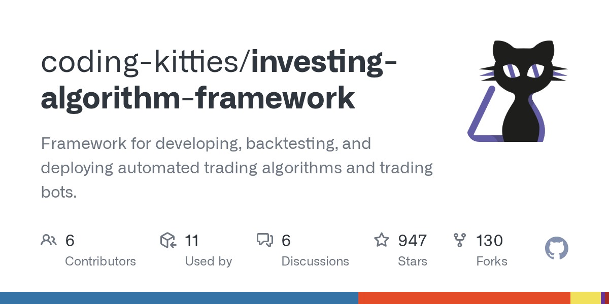 investing-algorithm-framework Framework for developing and backtesting automated trading strategies — backtest engine, indicator computation, and deployment pipeline. ★ 949